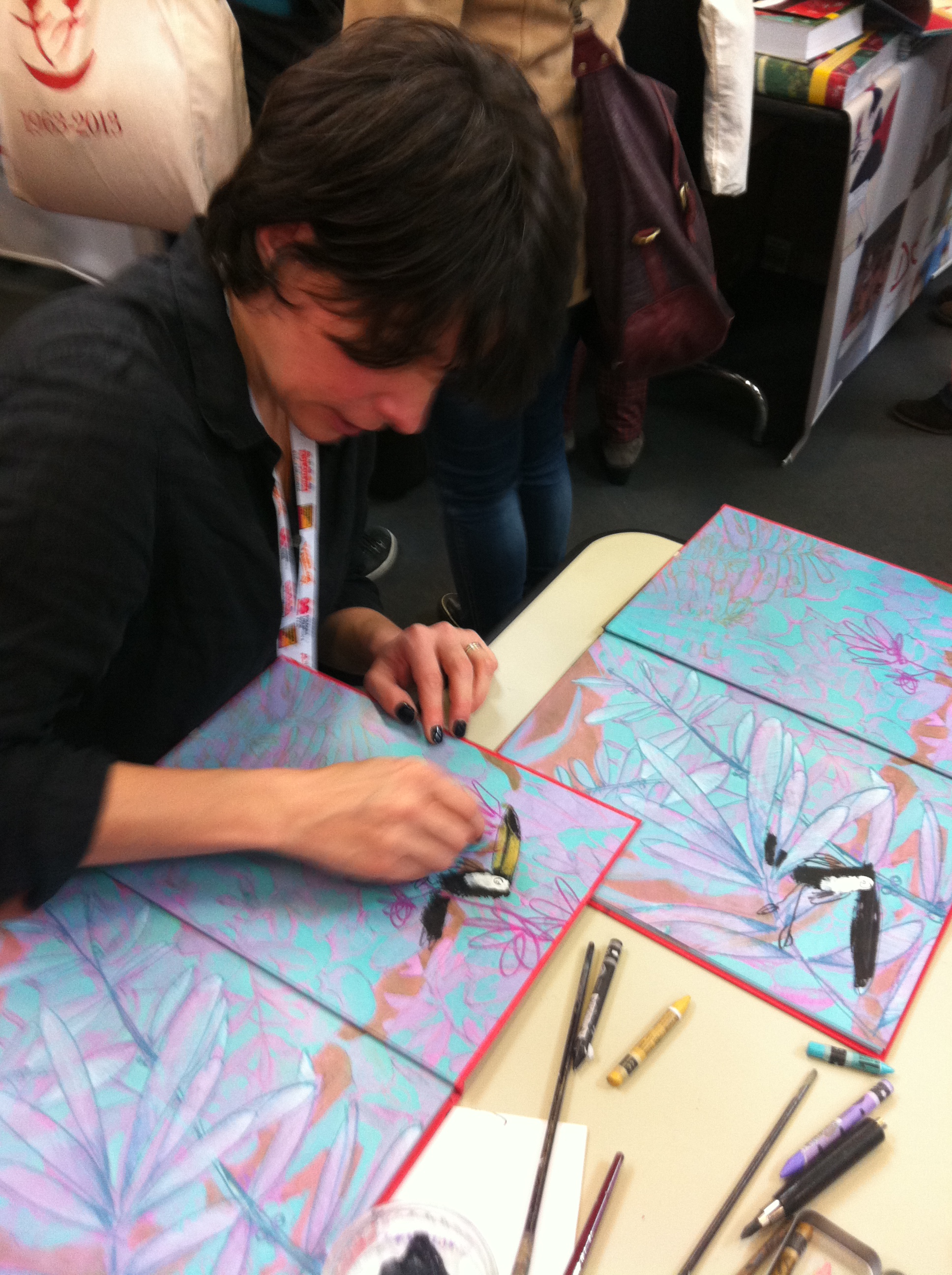 One of the best things about Bologna is meeting up with friends from the MA. But it is getting even more exciting when I see their books on Publisher’s stands. Some of them began as projects on the course two years ago, and some people (Steve Antony) even had giant panda posters…